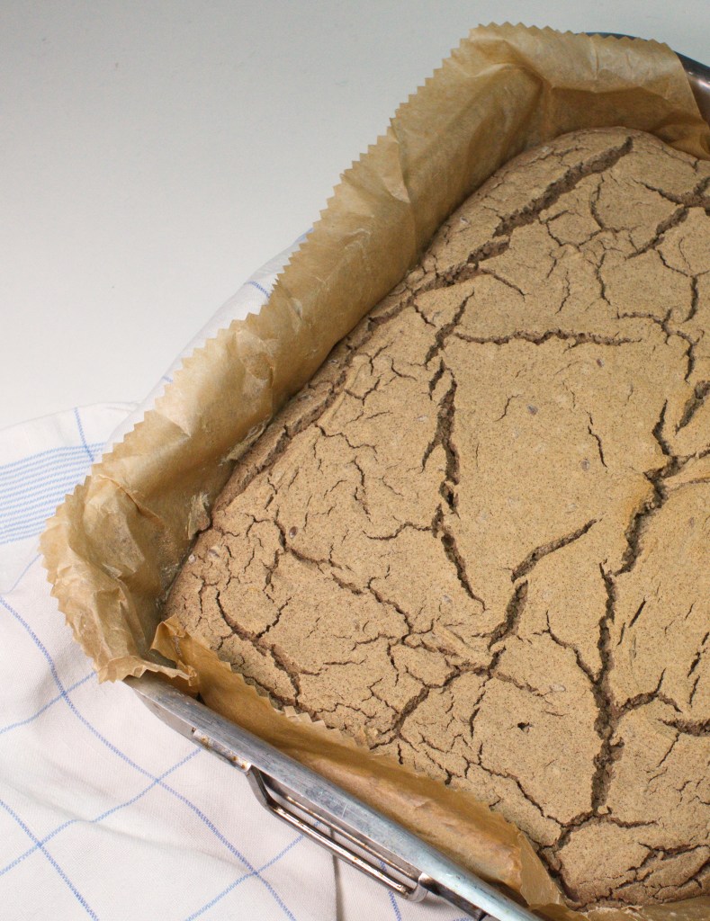 Nach einem Rezept von Modesta Bersin. Ich habe das Rezept geringfügig abgewandelt und nehme etwas mehr Kräutersalz und zusätzlich den geschroteten Leinsamen.