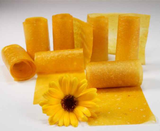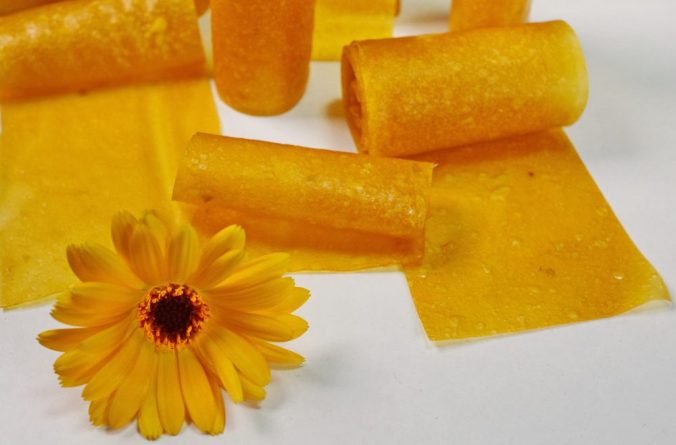 Das Fruchtleder ist fertig, wenn die Oberfläche fest und nicht mehr klebrig ist. Wenn die gewünschte Konsistenz erreicht ist, das Fruchtleder abkühlen lassen, in Streifen schneiden und aufrollen.